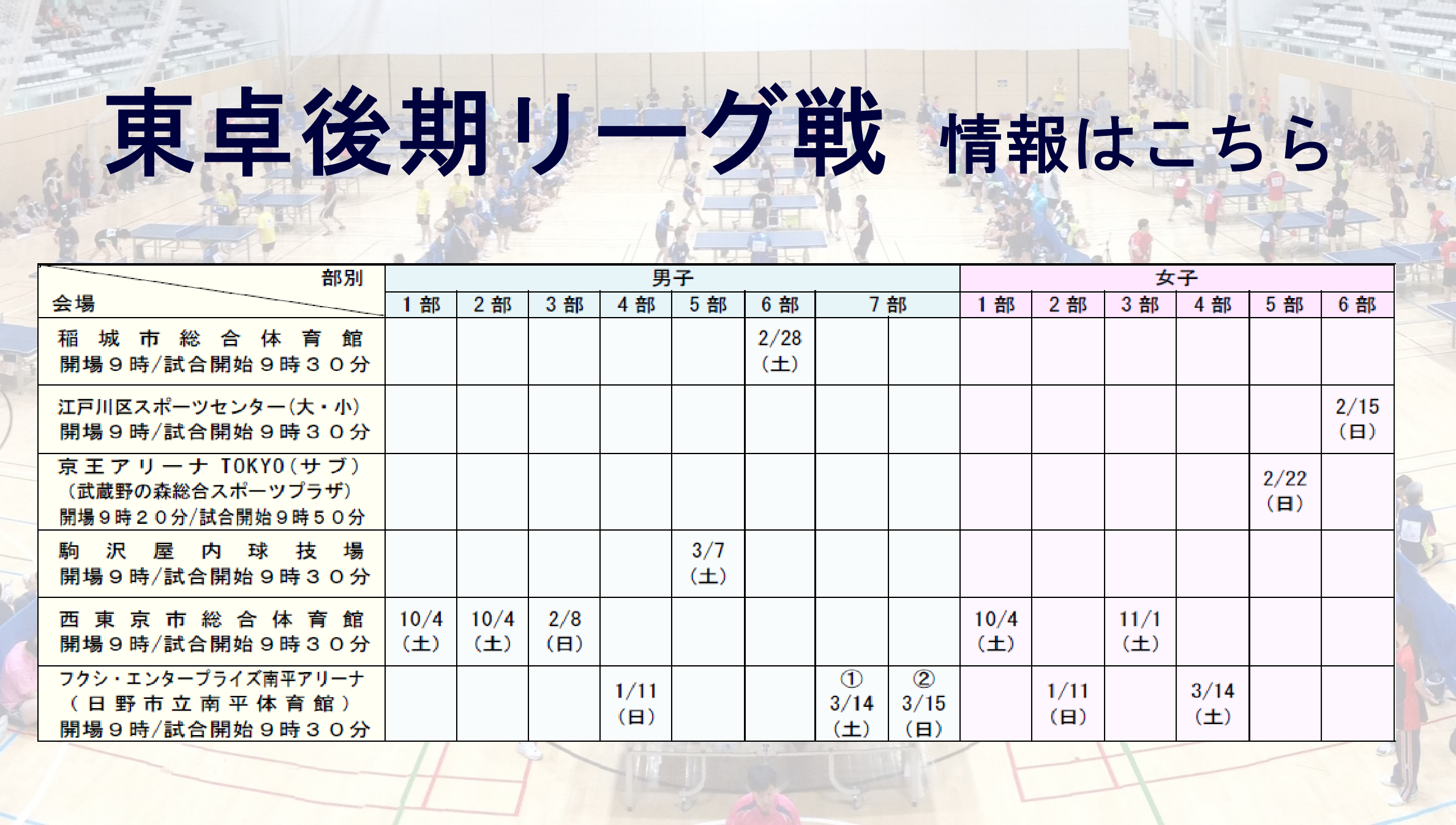 - 12/26《第35回東アジアホープス卓球大会日本代表選手選考会 東京都予選会》についてお知らせ
