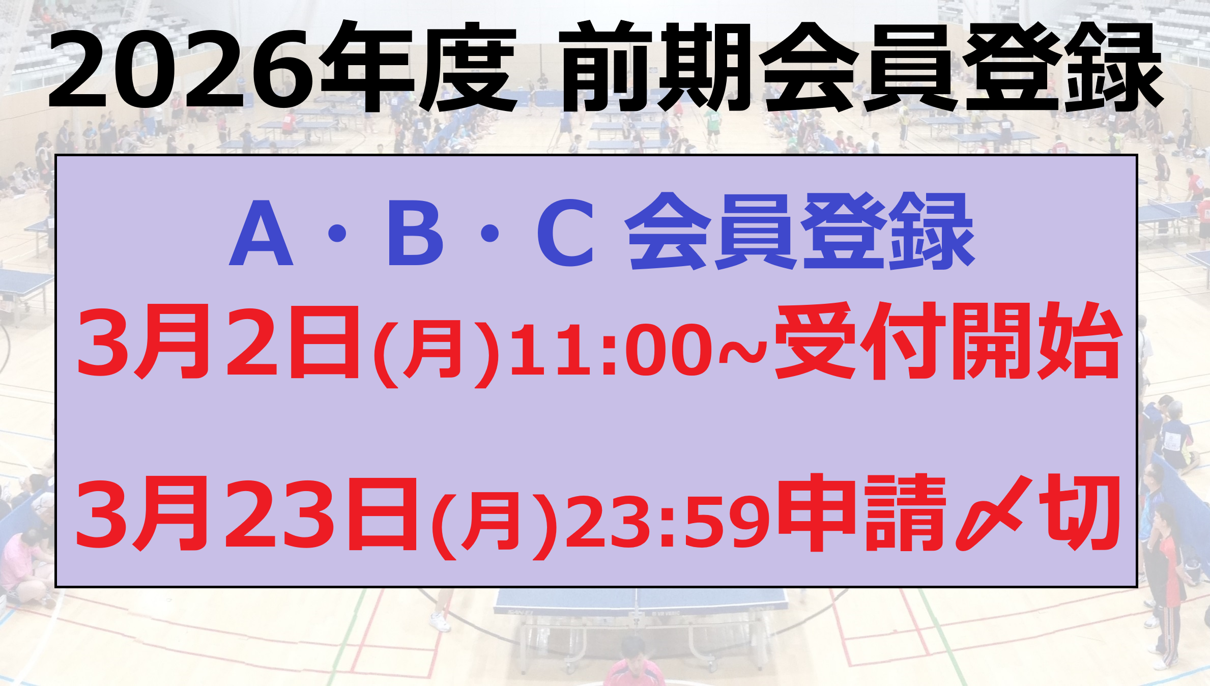 - 《2026年全日本卓球(一般シングルス・ジュニアの部)》学生ボランティアを募集します