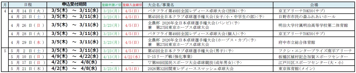 【3/5受付開始あり】2026年度前期大会要項(4・5月分)公開のお知らせ