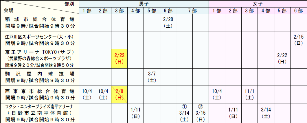 - 【2/8から日程変更】2025年度後期リーグ戦(男子3部)